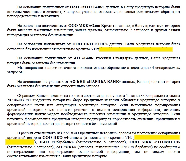 Мы собрали необходимую доказательную базу и, ссылаясь на ФЗ-218, направили официальные претензии. Взяв на себя полный контроль над коммуникацией с БКИ и кредитором, мы избавили Елену от необходимости самостоятельно разбираться в сложной бюрократической переписке.